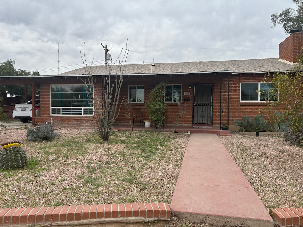 Midtown Historic 1946 adobe home with vibrant Mexican style colors and decor. Modern amenities including ductless ac/heat, and full kitchen with new appliances. Cal king bed and two twin beds all w/ memory foam. TV’s in all rooms. Board games and some DVD’s provided. Unique outdoor bathroom IS the second bathroom. Plenty of parking space for RV or trailers. Sorry, no weddings or events. Arizona TPT License # 21330071