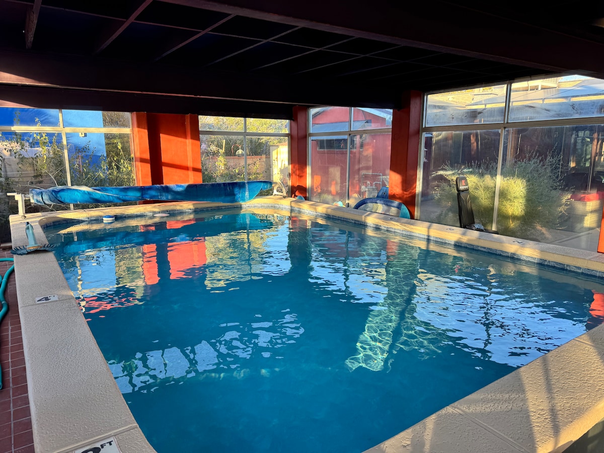 1-2 qonaq üçün uyğun olan, mikrodalğalı soba, kiçik soyuducu və Keurig qəhvəxanası olan kiçik balaca balaca balaca balaca mətbəxi olan günəş enerjisi ilə işləyən rahat kasitamıza xoş gəlmisiniz. 85 dərəcəyə qədər qızdırılan qapalı duzlu su hovuzu! Qonaq evində Sealy Posturepedic döşəyi, kondisioner, noutbuk masası və Roku axını olan 32" televizor olan 150-179 sm-lik çarpayı var. Kasitanın sevimli Tukson havasında yemək üçün masa, stul və çətiri olan şəxsi verandası var. Wi-Fi çox sürətlidir.