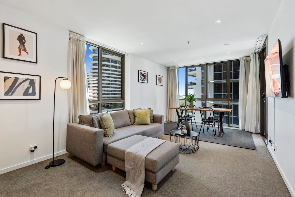 Broadbeach mərkəzində yerləşən qəşəng 1 otaqlı mənzilimizdə yerləşən Gold Coast lüks yaşayışının təcəssümünü yaşayın. Kazinoların gözoxşayan işıqlarından sadəcə bir neçə dəqiqəlik məsafədə yerləşən və yüksək səviyyəli restoranların əhatəsində yerləşən bu dəbli yaşayış yeri sahil gəzintiniz üçün həm rahatlıq, həm də mükəmməllik təklif edir.