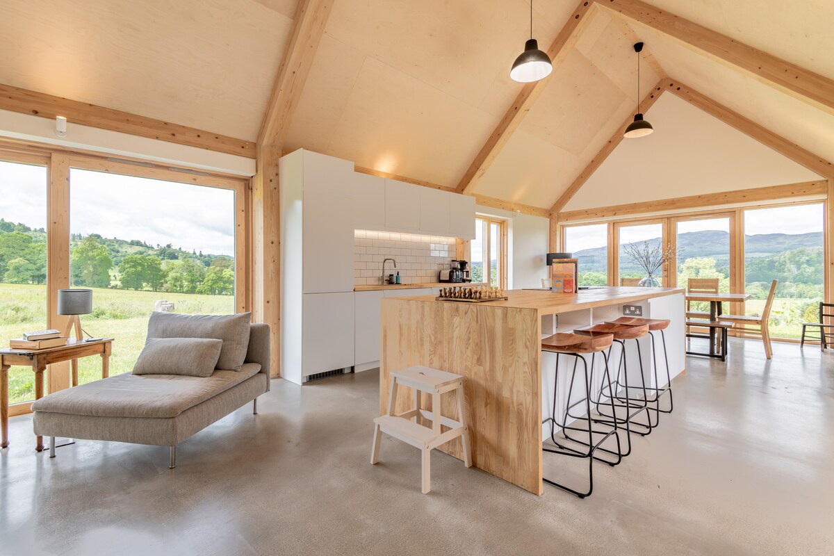 The Bothy is stylishly converted from two jold stone farm cottages into a luxurious 2 bedroom cottage. The decor is a mix between birch ply panelling and polished cement, giving it a modern Scandi/Scottish feel, yet not losing its original charm and farm history. Some of the furniture has been made from beech and cedar from our farm. With view across the River Earn and surrounding hills, this is a perfect place to come, explore, unwind and relax.