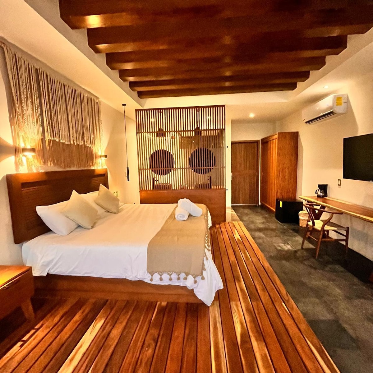 Canlı La Veletada yerləşən gözəl kondominiumlara xoş gəlmisiniz. Bu iki otaqlı qoruq zövqlə bəzədilib, komfort, üslub və funksionallıq qarışdırılır. Ürək tamamilə ayrıca terras və hovuza açılan və yaddaqalan qonaqlama üçün lazım olan hər şeyi təmin edən rahat qonaq otağıdır. Bu mənzil Wabi-Sabi fəlsəfəsindən ilhamlanan cəmi 9 eksklüziv vahidi olan Çukum Nah butikinin daxilindədir və daha az zehniyyətə diqqət yetirməklə mükəmməl zəriflik kimi müəyyən ediləcək.