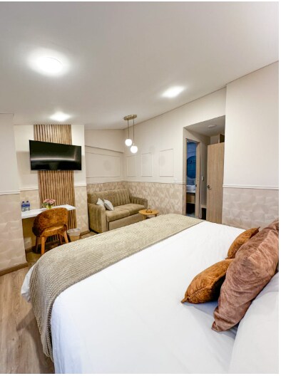 Descubra el confort de hospedarse en nuestro exclusivo Apartahotel. Diseñado para quienes valoran la comodidad de un hogar con los servicios de un hotel, ofrecemos espacios modernos, totalmente equipados y pensados para su bienestar. Ubicado en una zona estratégica, nuestro Apartahotel le brinda un ambiente tranquilo y seguro. Ya sea por negocios o placer, aquí encontrará la combinación perfecta de funcionalidad y calidez que hará de su estancia una experiencia excepcional.