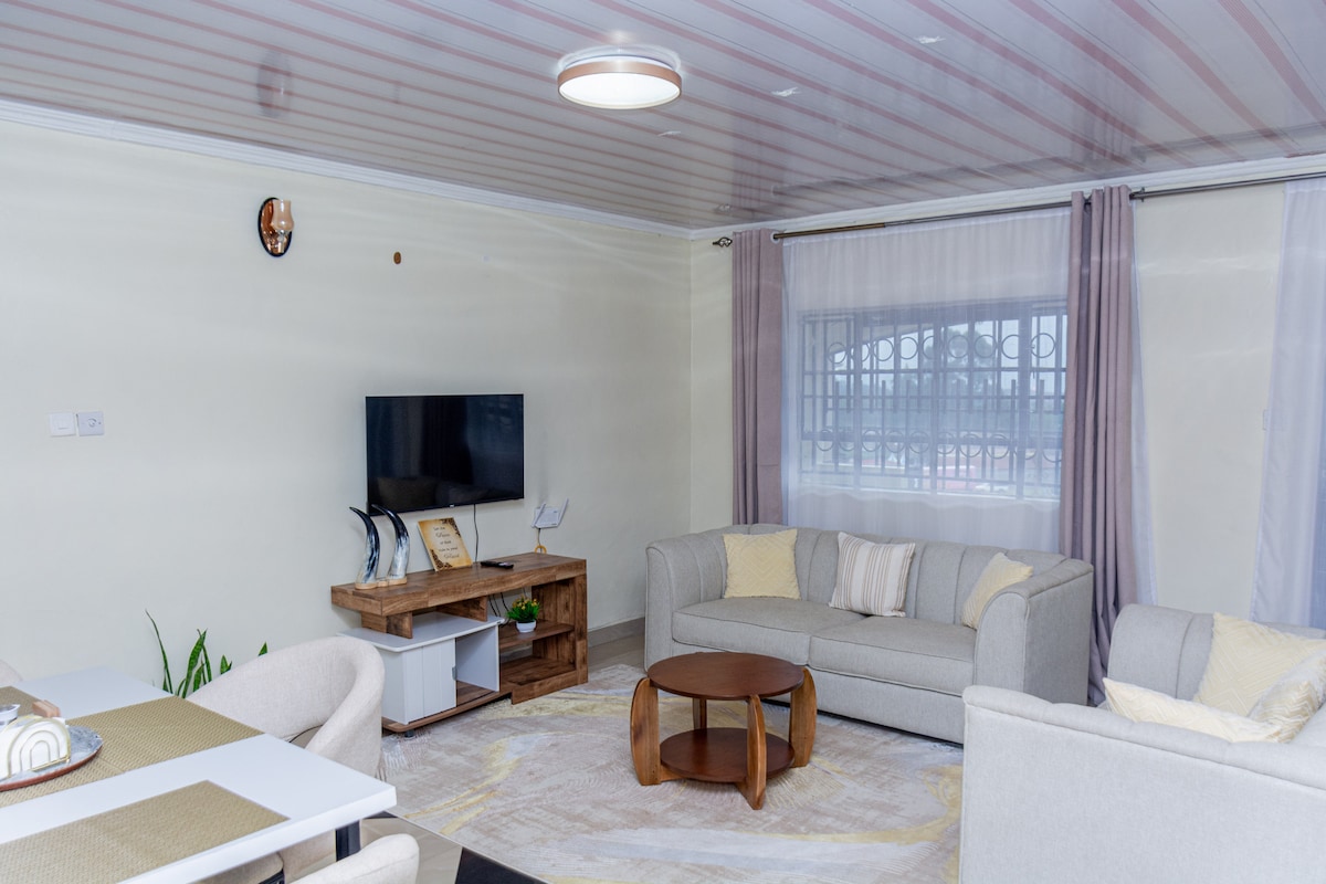 The Vogue Villa – your luxury escape in the heart of Eldoret.Nestled just steps away from the iconic Rupa’s Mall, this stylish three-bedroom villa offers the perfect blend of modern elegance, comfort, and convenience. Step into beautifully curated interiors with spacious living areas, a fully equipped kitchen, and hotel-quality bedrooms designed for pure relaxation. Enjoy high-speed Wi-Fi, smart TV, plush lounge furniture, and a balcony with city views — all in a secure, serene neighborhood.
