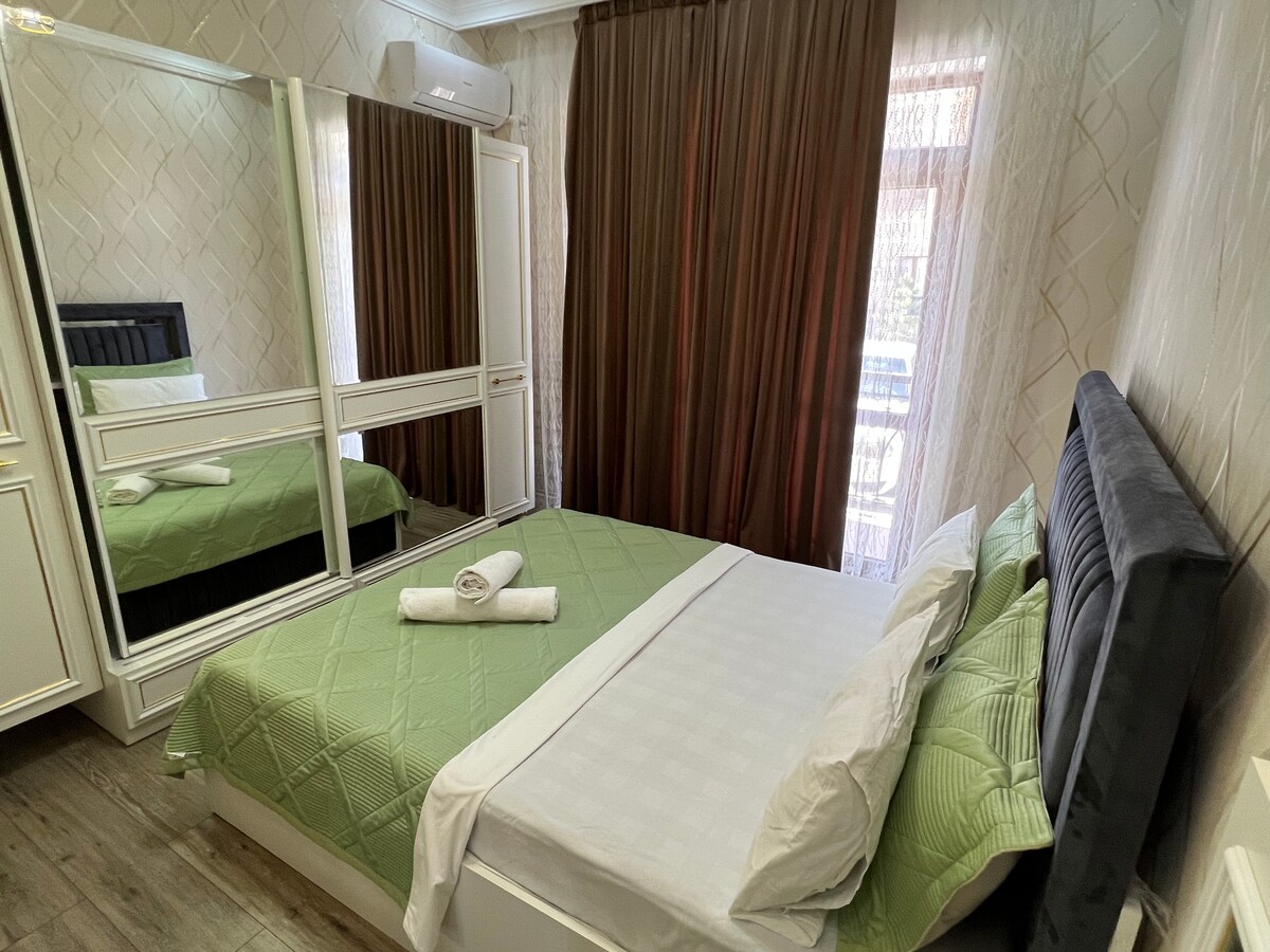Mənzilimiz Dendra parkı ilə üzbəüzdür, valehedici mənzərələrdir, ailələr üçün idealdır, çox rahatdır. Burada üç çarpayısı olan 2 yataq otağı, bir zal, mətbəx və iki tualet var. Bina Tumar kompleksidir. Yeni və müasir.
