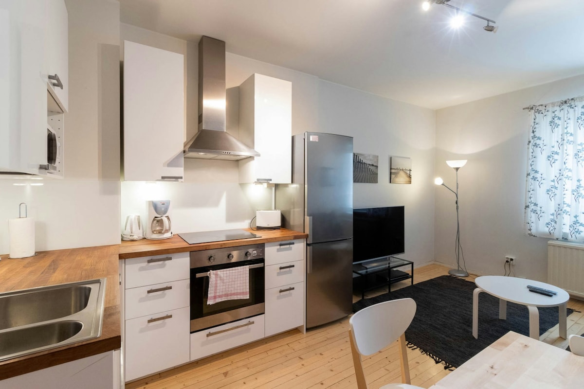 Recently renovated 1-bedroom apartment in Turku city center. Fully equipped with modern appliances, free street parking, high-speed Wi-Fi, and bed linens. Close to market square, restaurants, and shops. Affordable and convenient.