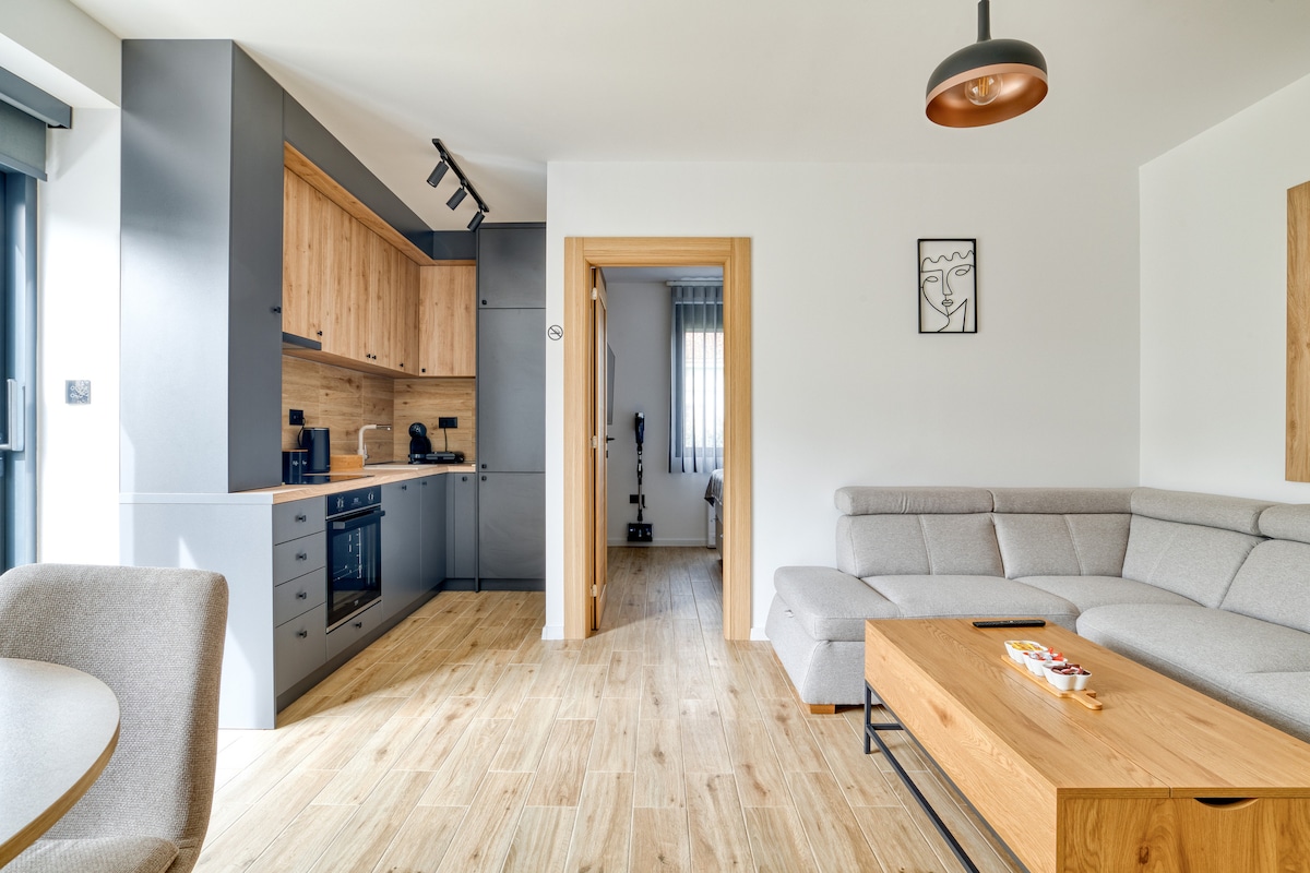 Bu dəbli qalmağa yer qrup səfərləri üçün mükəmməldir. Mənzil ən yaşıl və gözəl ərazidə ideal yerdədir. Burada 80m2, iki yataq otağı, hamam otağı, tualet, iki terras və pulsuz parkinq yeri var. Binada 24/7 işləyən aptek tapa bilərsiniz: çoxlu supermarketlər, kafelər, banklar, iki bankomat. Şəhərin mərkəzindən 700 m məsafədədir, çaydan 10 dəqiqəlik məsafədədir. Şəhərdəki bütün vacib yerlər çox yaxındır. İki avtobus stansiyası və taksi stansiyası var.