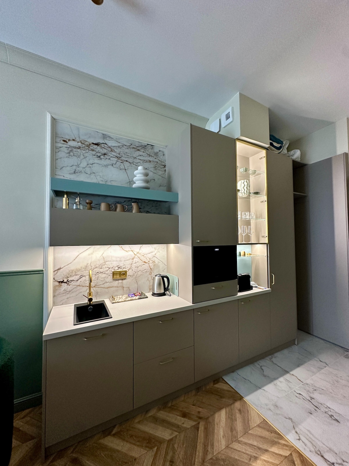 Yenilənmiş mənzilimiz müasir rahatlıq və dərhal səmimi və cəlbedici mühit yaradan, sevgi ilə hazırlanmış detalları birləşdirir. Əsas xüsusiyyət böyük divan və atmosfer işıqlandırması olan rahat ev kinoteatrıdır – axşamlar dincəlmək üçün mükəmməldir. İki sakit yataq otağı, tam təchiz olunmuş mətbəx və sürətli Wi-Fi və buxarı olan bağça məkanı cütlüklər, ailələr, dostlar və uzaqdan iş üçün ideal edir.
