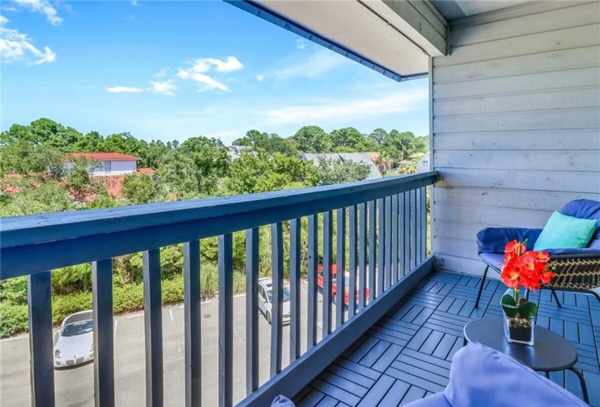 We loved this condo at first site. The view is unbelievable, and it's been recently upgraded and renovated. Walk down the condo stairs and follow a sandy 5 min walk to the ocean. Condo has an unobstructed view of the beach and ocean. This condo offers private condo beach access, two great pools and free covered parking space. Cant get much closer to beach! Ask about our golf cart rental. This condo is on the third floor and no elevator. There are 46 steps however the view is amazing!