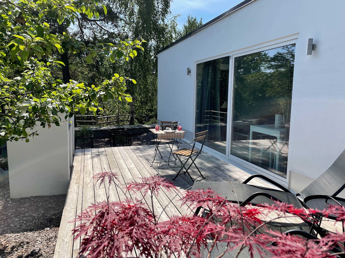 2022-ci ildə okean kənarında tikilmiş, körfəz və arxipelaq üzərində fantastik mənzərəli müasir mini villa. Evin aşağısında xüsusi jetti ilə sahilə yaxın. Qayıq, kayaklar, SUP və velosipedlər sizin ixtiyarınızdadır. Zal, əsas yataq otağı və hamam otağı, qonaq otağı olan yuxarı mərtəbə, tam təchiz olunmuş mətbəx və çoxmərtəbəli çarpayısı olan kiçik yataq otağı ilə aşağı mərtəbədə 48 kvadratmetr bölünüb. Balkon və terras üçün sürüşkən qapılar. Tirresö qəsrinə və Tiresta Milli Parkına yaxındır. Stokholm şəhəri cəmi 21 km. Yaxşı ictimai nəqliyyat.
