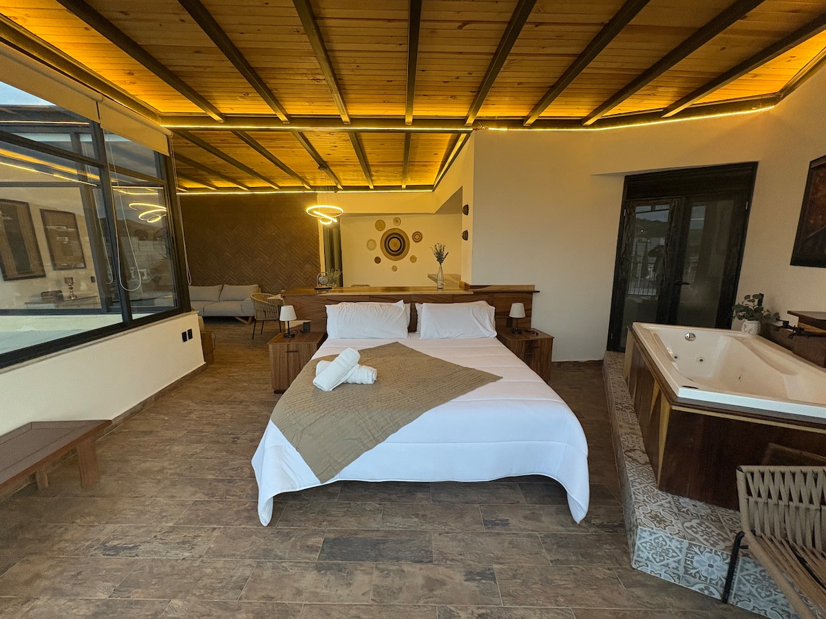 Relájate en este espacio tan tranquilo y elegante, lleno de vida con su hermoso jardín, su relajante jacuzzi, la espectacular televisión de 75 pulgadas en la sala, para ver tus películas y series favoritas. Además está muy bien ubicado para disfrutar de Tequisquiapan y sus alrededores plenamente, como sus queserías, viñedos, globo aerostático, cuatrimotos, caballos, restaurantes, bares y recorridos. No dejes de visitar la Peña de Bernal, las minas de ópalo, etc.
