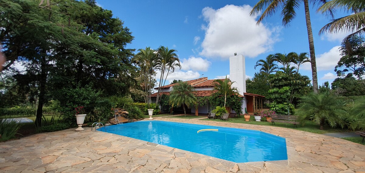 Yavaşlayın! Sakitlik və rahatlıqla əsl cənnət! Şəhər mərkəzindən 20 dəqiqəlik məsafədə, asan giriş, təhlükəsizlik və Wi-Fi ilə kənd yerində yerləşir. 1 cüt süita/3 tək çarpayı olan 1 süita/2 tək çarpayı olan 1 yataq otağı/2 kənar tualet, cəmi 7 nəfərlik rahat yaşayış yerləri. Ekoloji qoruq və bənd mənzərəsi olan geniş qonaq otağı və tam təchiz olunmuş mətbəx. Quşların oxuduğu balkon. Təbii axan su hovuzu, tərəvəz bağı, axın və bəndə giriş. Bu, bir hissəsini sizinlə paylaşdığımız evimizdir!