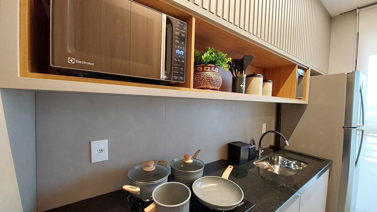 Uberlândia-da müasir və qonaqpərvər tətiliniz! Daxil olun və özünüzü evdəki kimi hiss edin. Bu füsunkar studiya istər sürətli qonaqlama, istərsə də daha uzun müddət rahatlıq və praktiklik arasında mükəmməl balans təklif etmək üçün hazırlanıb. Ətraf mühit inteqrasiya olunub və yaxşı işıqlandırılıb, müasir dekorasiya və sağlamlığı təmin edən toxunuşlar var. Planlaşdırılmış mətbəx tam hazırdır, sevimli yeməklərinizi hazırlamaq üçün avadanlıq və ləvazimatlar var.