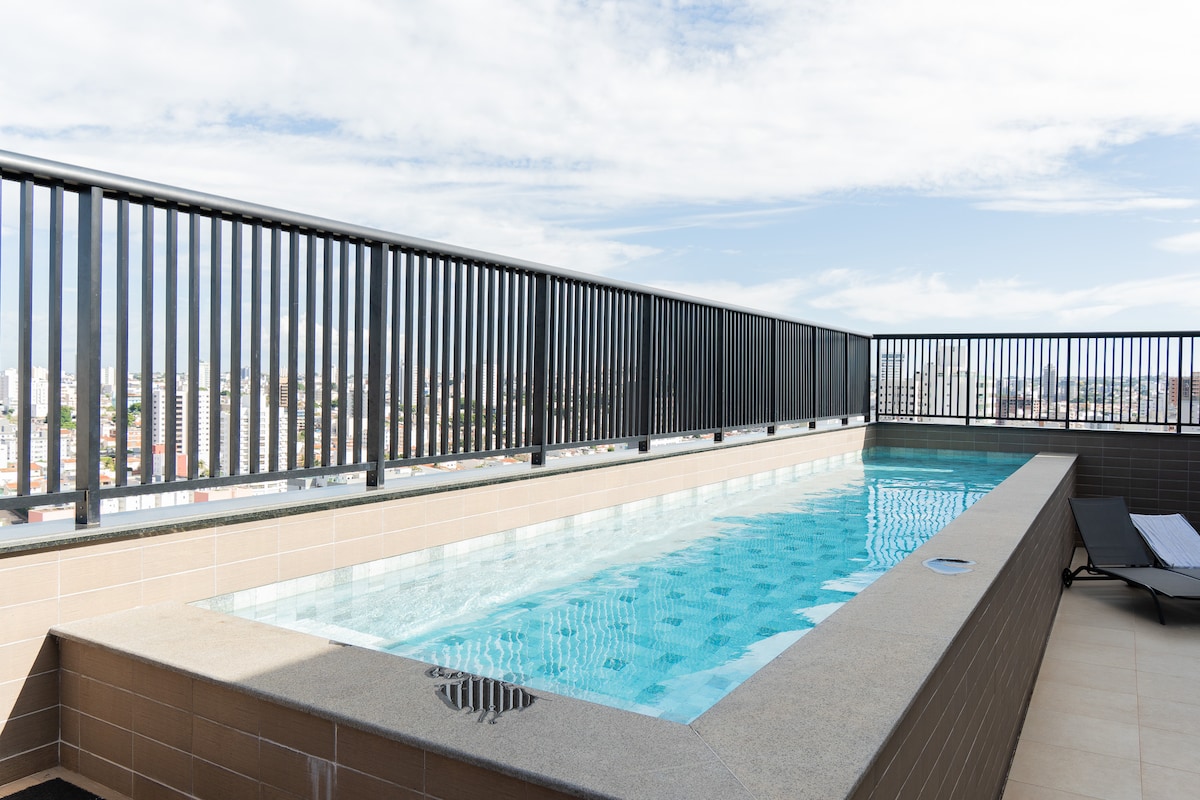 Şəhərin gözəl mənzərəsi olan yüksək mərtəbədə yerləşən müasir studiyada rahatlıq, praktiklik və zərifliklə unikal təcrübədən zövq alın. İstirahət və ya iş üçün ideal olan bu məkan UFU, Center Shopping, supermarketlər, apteklər və əla restoranlara yaxın strateji mövqe təklif edir. Əsas yollara asan giriş, sürətli Wi-Fi, pulsuz Netflix, parkinq yeri, tam mətbəx və rahatlıq, təhlükəsizlik və unudulmaz qonaqlama təmin etmək üçün hazırlanmış quruluş.
