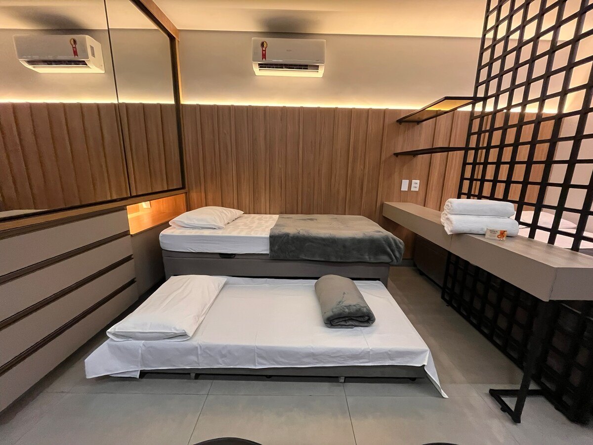 Apartamento (loft), com 38 m2. Possui 1 cervejeira ,1 geladeira nova. Tv 44 polegadas giratória, com rotação para quarto e sala.Cortinas entre sala e quarto três camadas. Lava seca. Forno Brastemp 3 em 1 novo. Cooktop com 5 bocas, depurador de ar suggar. Churrasqueira de carvão na sacada. Toldo para sol. Mesa alta de madeira na sacada. Ar condicionado, divisórias de vidro canelado no quarto e área de serviço. Tábua de passar embutida. Filtro soft de água gelada e natural. Possui 1 garagem.
