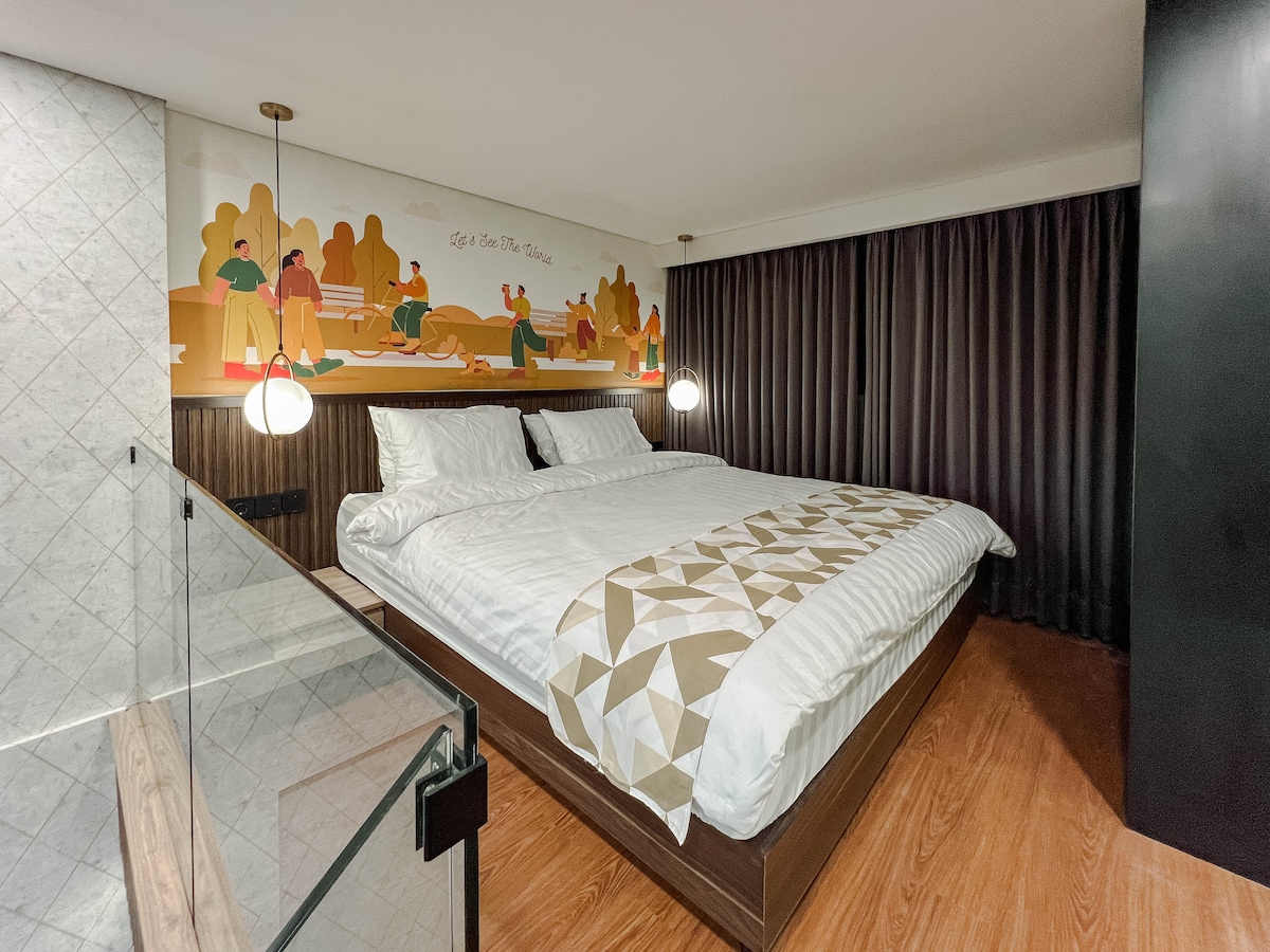 Modern Studio Sunset Loft in Ubud’s premium ONYX resort with full access to top amenities: • 45 m² layout with king bed, blackout curtains & A/C; • Sound insulation & high-speed Wi-Fi; • Balcony with outdoor seating; • 6 restaurants on-site, breakfast available; • Access to 3 pools; • Gym, spa, playgrounds, and more (additional fee); • Free parking & 24/7 security.