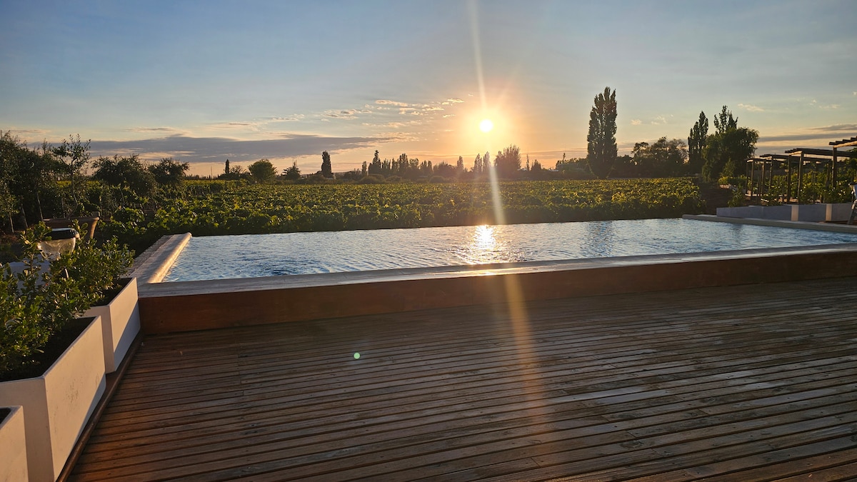 A unique place. A space to fully experience. 13 km from the city of Mendoza and within the "Wine Roads" circuit. With a private exit, exclusive covered garage, excellent Wi-Fi, a queen-size bed, en suite bathroom, TV, refrigerator, electric oven, microwave, electric kettle, bed and bath linens, and pool towels. We also include a split-screen TV and a safe. We continue to add comfort and tranquility to make your stay in our space unforgettable.