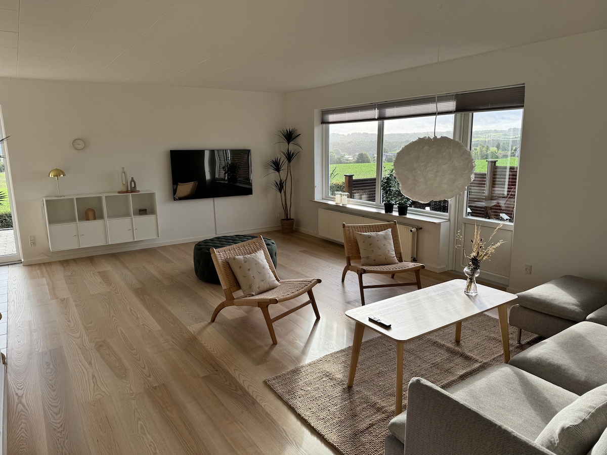 Kənd mənzərəli, gözəl bağçası olan, dəniz mənzərəli ev. Xoruzun ötüşü ilə oyanın və inəklərin otladığını izləyin. Obenro/Sonderborqa 20 dəqiqə. Flensborqa 30 dəqiqə. Gözəl təbiət şəraitində piyada gəzinti və velosiped turları. Qolf. Balıq ovu üçün yaxşı imkanlar. 2026-cı ilin yanvar-fevral aylarında qonaq otağında kiçik dəyişikliklər ediləcək. Qonaq otağı iki otağa bölünür. Bir qonaq otağı və bir otaq. İş sahəsi otağa köçürülür və oraya çarpayı qoyulacaq.