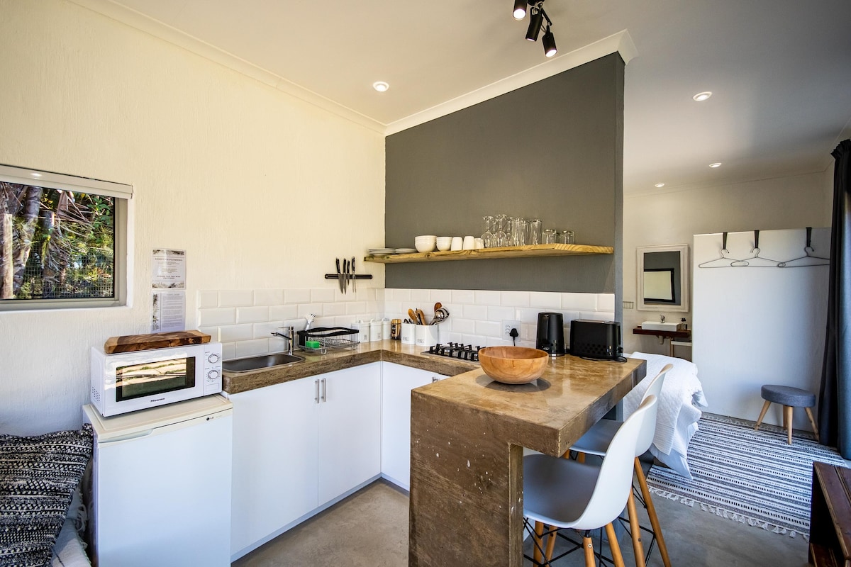 Rahat, dəbli rondaveldə yerləşən səsli dalğaların səsinə yatın. Soch dam, qışda isti, yayda sərin. Yarı açıq, tam təchiz olunmuş mətbəx, yemək sahəsi. Ulduzların altında duş qəbul edin. Bu sub-tropik mühitə mükəmməl şəkildə uyğundur. Şəxsi bağ sahənizdən kənarda qamakda dincəlin. Sakin ev sahibi, köhnə cənub sahili surfer Alan, sizi ən yaxşı yerli fasilələrə yönləndirəcək! Əks halda, sadəcə bu xüsusi istirahət məkanından zövq alın. Səhər yeməyi qiymətə daxildir. Öz toyuqlarımızdan yumurta!