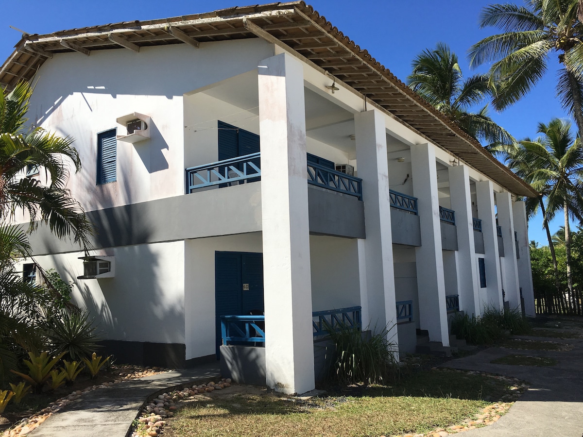 Ao sul de Ilheus de frente a praia de Acuípe, no CECRE. Próximo a mata atlântica. Excelente para pescaria, caminhada e banho! Apartamento rústico, wi fi, climatizado, rede na varanda, mini cozinha com eletrodomésticos e utensilios básicos. Excelente para família com crianças, e aceitamos Pet! Quartos com roupa de cama e banho para seu conforto, higienização com ozônio, dentro de uma área de 20 mil metros quadrados, rio, piscina, parque infantil, quadra de futebol e vôlei, salão de jogos.