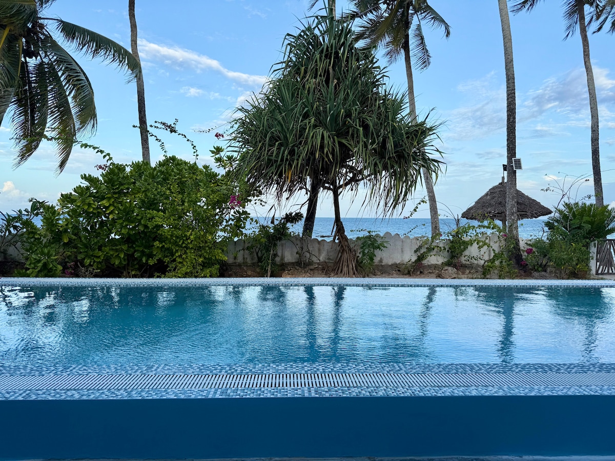 2 bedroom villa with fully equipped kitchen and spacious bathroom. This villa sleeps up to 4 people. A stunning fresh water pool is right in front of the living room and the pristine beach is just few steps away. The property is surrounded by scented Lemon grass(Mchaichai) and many other plants in a secure private residency. All rooms are air conditioned and well ventilated. Cozy outdoor lounge, dinning/BBQ makes a perfect outdoor living. Sunbeds are also available at our private beach.