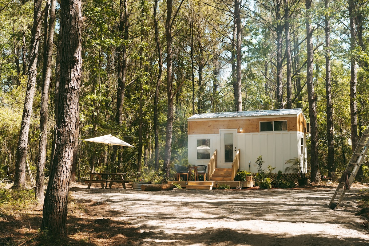 Strictly non-smoking inside unit, strictly no pets. This keeps our customers with allergies happy and the room smelling clean 24hr self check-in (YES) 420 friendly? (YES-outdoors only) 450sq ft home built tiny house located in rural north central Florida on a spacious 3 acres. Quiet, peaceful location with abundant wildlife. We are 10 minutes from a dollar general and 20 minutes from the interstate. Make sure our location suits your needs before booking.