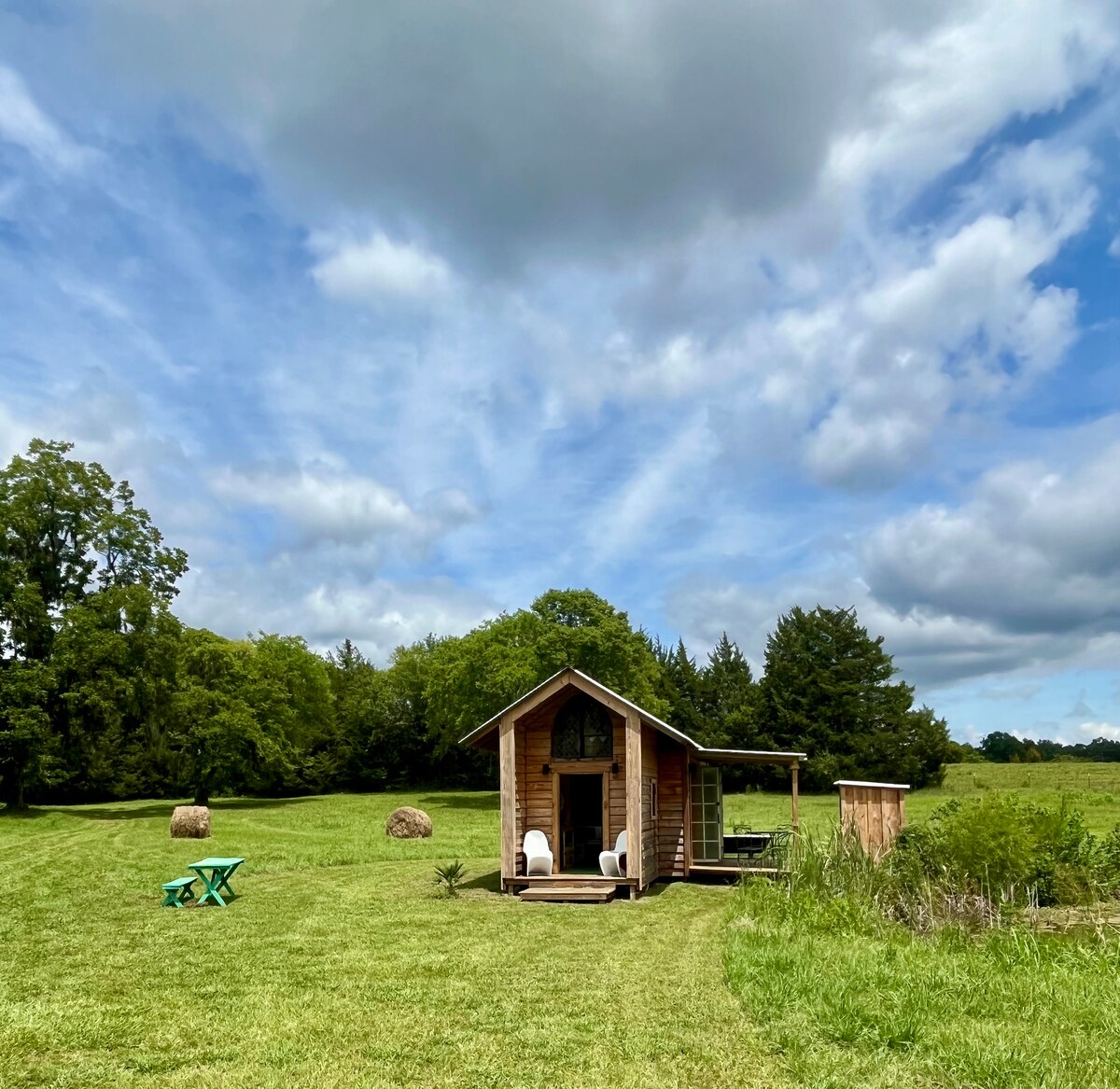 399 kv. metrlik evcik, meşədə yerləşən, AU, Robert Trent Cons, restoranlar və alış-veriş üçün əlverişlidir. Ev sahiblərinizin növbəti qapıda yaşamağı seçdiyi, lakin tam məxfiliyi təmin etdiyi bu cür dinc şərait. İstər idman tədbirində iştirak edin, istərsə də sadəcə səs-küydən uzaq sakit həftəsonu keçirin. Təbiəti sevirsinizsə, 10 hektar gözəlliyə təəccüblənə bilərsiniz. Payızda yataq otağının pəncərəsindən kənarda maralların qidalandığını görə bilərsiniz. Sizi qonağımız kimi gözləyirik!