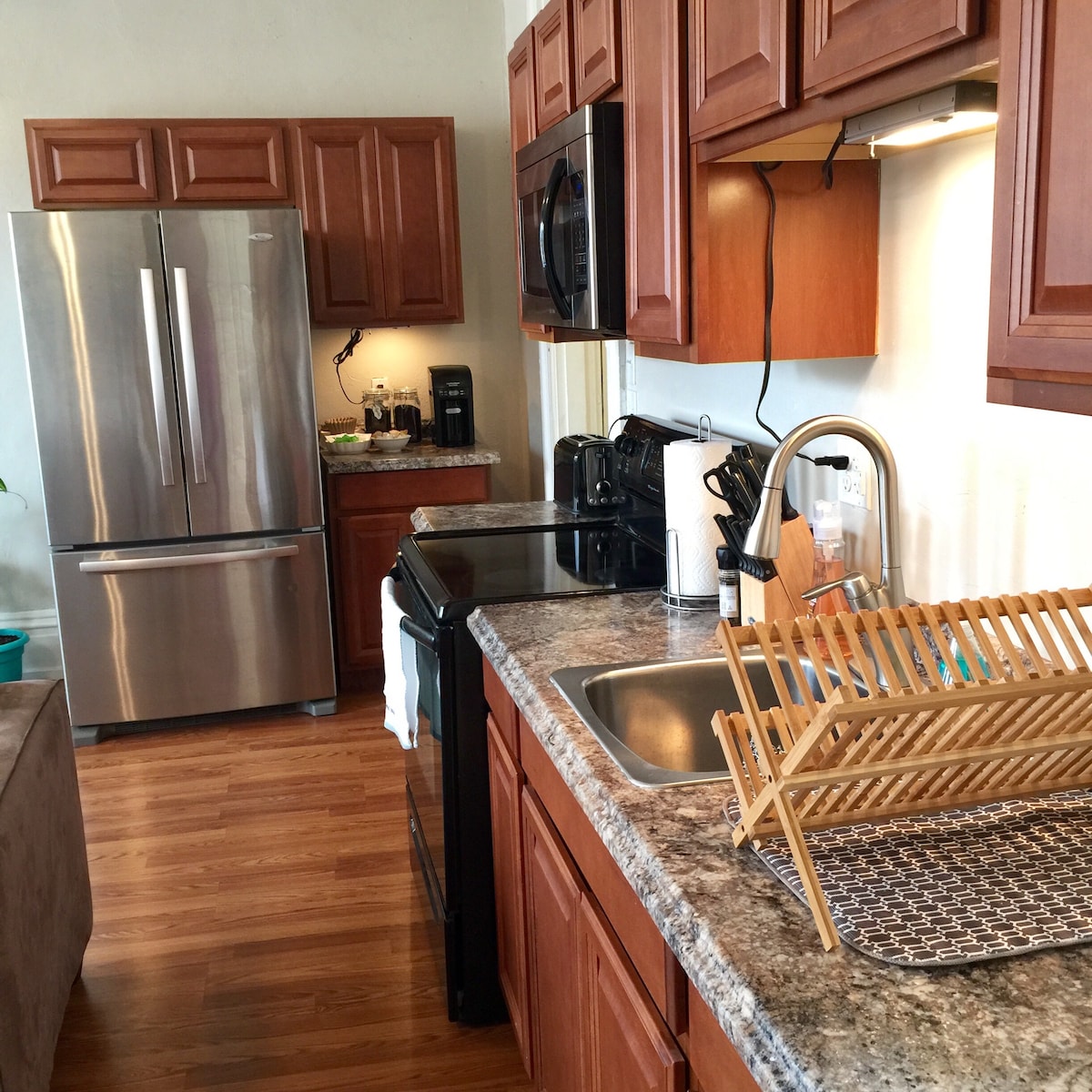 Yüksək keyfiyyətli məişət texnikası ilə təchiz olunmuş qurman mətbəxi və dincəlmək və ya əylənmək üçün mükəmməl olan geniş yaşayış sahəsi olan, birinci mərtəbədə yerləşən dəbdəbəli 1 otaqlı mənzildən zövq alın. “Queen-size” ölçülü yataq otağı rahat bir gecə yuxusu təmin edir. Yüksək sürətli Wi-Fi və xüsusi iş sahəsi sayəsində işgüzar səyahətçilər və ya uzaqdan işləyənlər üçün idealdır. Şərikli parkinqə giriş (6 yer, növbə ilə). West Penn Xəstəxanası və UPMC Shadyside yaxınlığında yerləşir, cütlüklər, qonaq ailələr və ya tibbi qonaqlamalar üçün mükəmməldir.