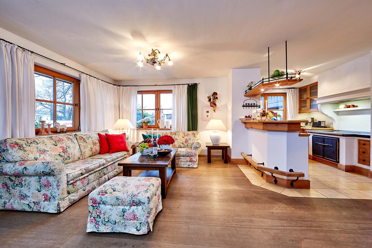 120 illik yeni incəsənət evimiz Münhen və məşhur qəsrlərin arasında, gözəl və heyrətamiz Alpətəyi ərazilərində yerləşir. Qonaq evimizdə yemək bişirmək üçün lazım olan hər şeyi olan böyük mətbəx, iki rahat və fərdi yataq otağı və müasir hamam var. Qonaq otağında romantik buxarı var. Məkan ailələr, cütlüklər və dostlar üçün idealdır.