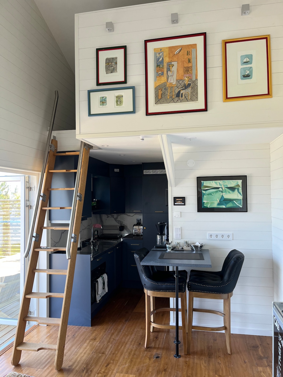 1900-cü illərin əvvəllərindən öz çimərliyinə və çimərliyinə 10 metr məsafədə unikal bir qayıq evi. Evdə duş, tualet, sadə balaca mətbəx, buxarı və odunla işləyən sauna, həyat keyfiyyətini qiymətləndirən və mərkəzdə yaşamaq istəməyən vahə var. Birbaşa döşəmədə iki döşəklə loftda yatmaq. Yataq loftuna qədər Ladder. Yataq dəstləri, dəsmallar daxildir.
