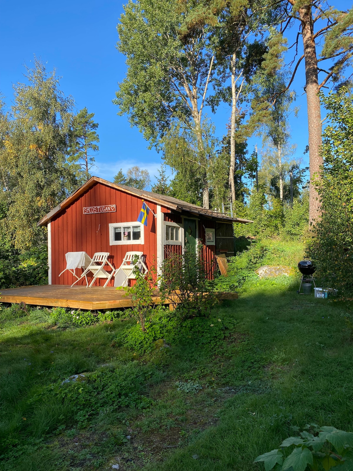 Bağ evində xoş bir gecədən sonra səhər yeməyi böyük gölməçənin yanındakı doka aparılır. Əlinizdə bir fincan təzə dəmlənmiş qəhvə ilə kəşf ediləcək hər zaman maraqlı bir şeyin olduğu gözəl, parka bənzər yerlərə baxırsınız. Mälarenin parıltılı suyu ilə qısa bir məsafədə, Stockbybadet-də üzməyi cəlb etmək asandır. Biz böyük şəhərə yaxınıq, lakin hələ də kənddəyik və həm ərzaq mağazasına, həm də sevimli şirniyyat dükanına piyada məsafə ilə bir qədər uzun müddət qalmaqdan məmnunsunuz.