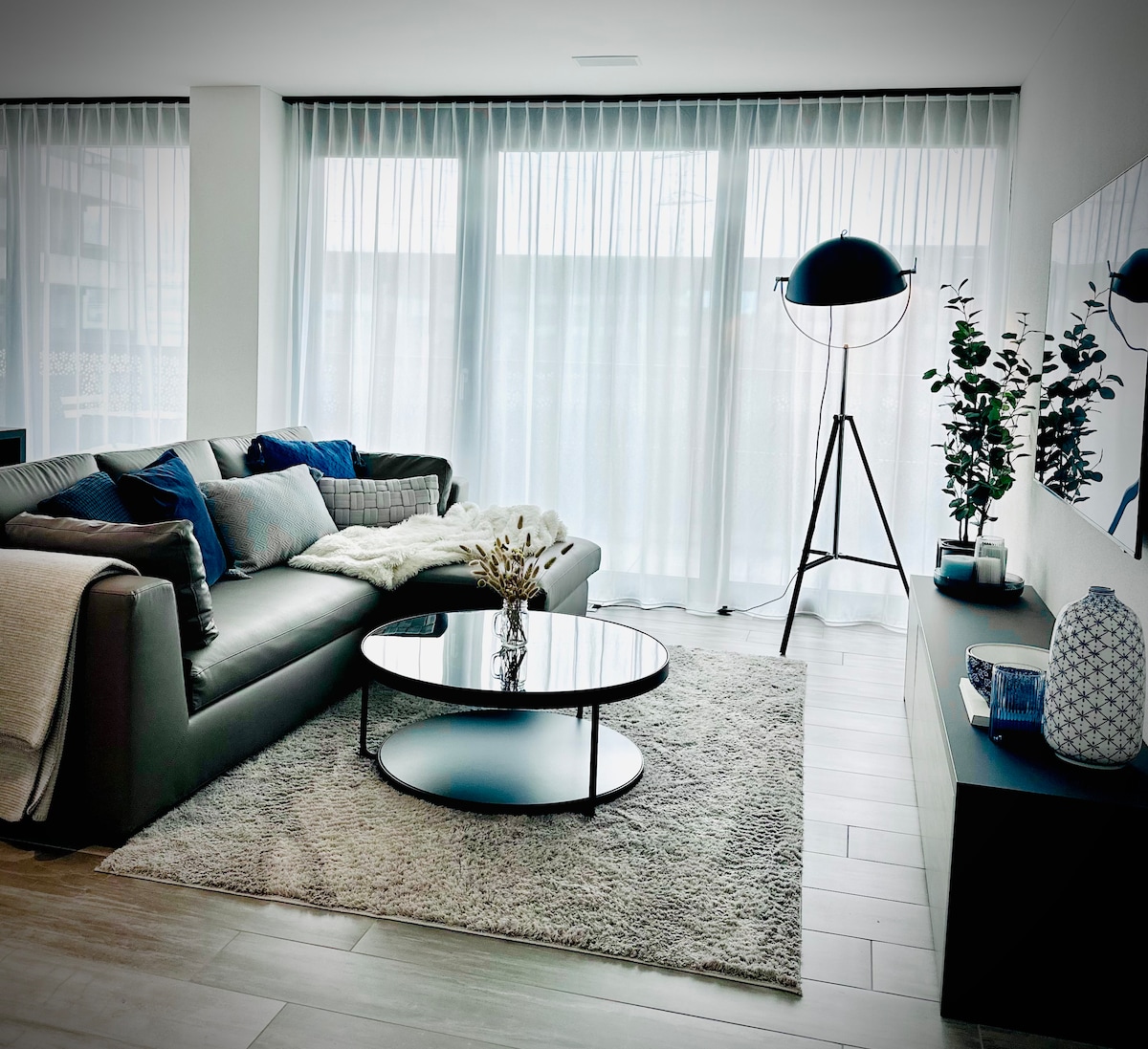 Welcome to Visionary Hospitality in Bassersdorf, Zürich. Apartment 301 is one of five at this Location. Main Advantages House => Elevator => Bus Stop in Front of House => Free Parking / Paid EV Charging Main Advantages Apartment => Terrace => King Beds => 2 Full Baths => 75" Smart TV => Free Consumables => Free Washer / Dryer => Fully Stocked Kitchen => Iron with Board / Vacuum => Nespresso Coffee Machine, Microwave, Toaster, Kettle On Request => Vaulted Cellar for Events