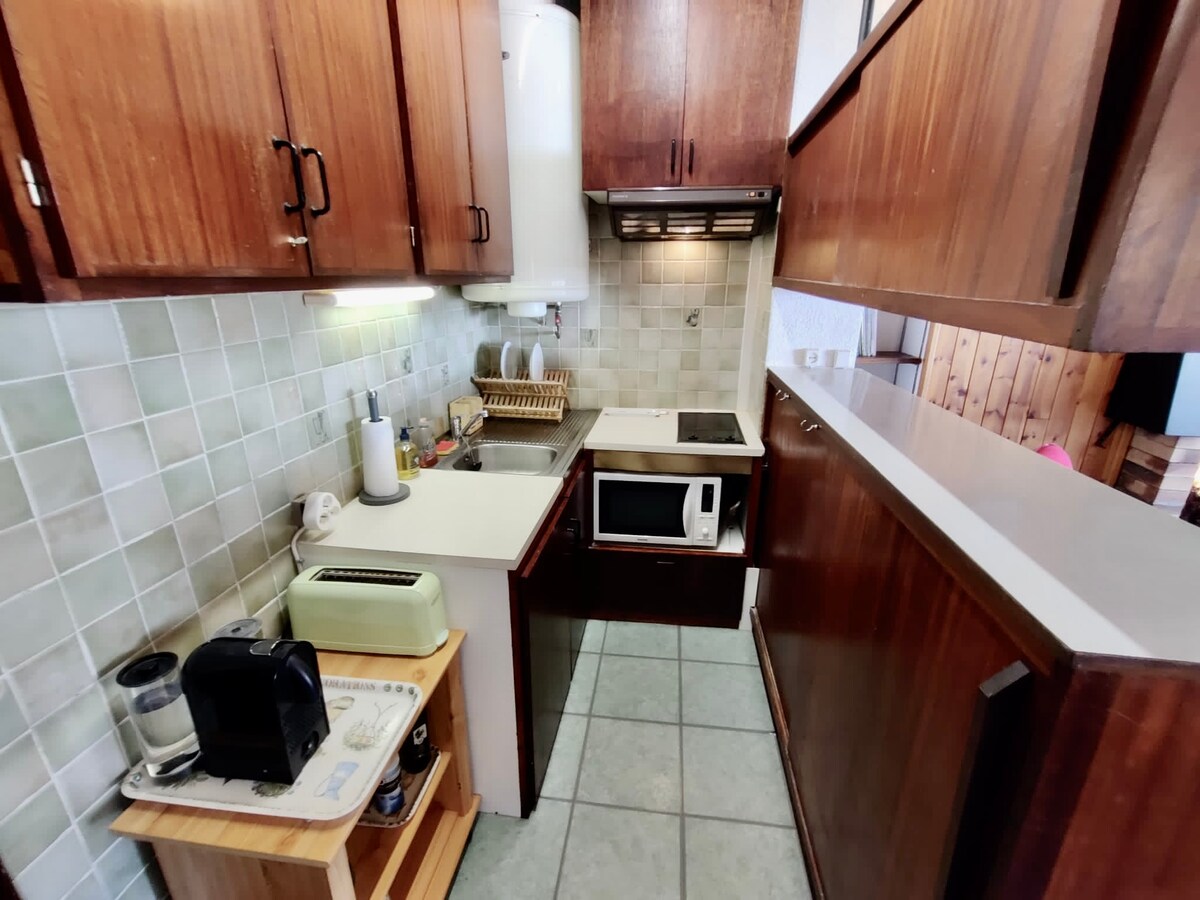 30m2 mənzil təsnifatı 3*, cənub üzlü balkon və yamaclar mənzərəli, mağazalardan və xizək liftindən 5 dəq məsafədə yerləşir. 4 nəfər üçün tam təchiz olunmuş, cənub tərəfdəki balkona açılan balaca mətbəxi olan böyük qonaq otağı. İkimərtəbəli çarpayıları olan dağ küncü, tualeti olan duş otağı. Döşəkağı-dəsmal verilir və quraşdırılır. Qəhvə, çay, ərzaq, təmizlik və gigiyena qarşılama dəsti. Airbnb haqqı yoxdur
