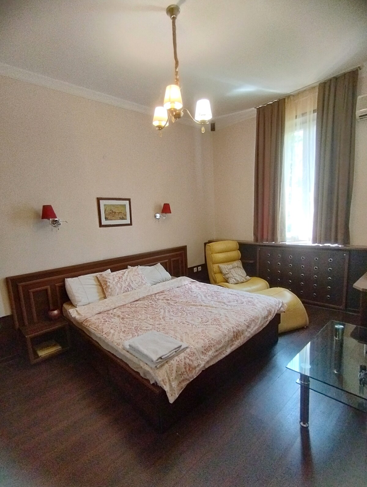 Daşkəndin mərkəzində hündür tavanlı rahat mənzil. Məkan parklara, fəvvarələrə, restoranlara və muzeylərə yaxın yaşıl ərazidə yerləşir. Ən yaxın metro stansiyasına qədər 5 dəqiqəlik məsafədədir. Şəhərin yaşıl mərkəzində, yaxınlıqdakı parklarda, restoranlarda, muzeylərdə və metroda rahat, yüksək kottecli mənzil. Mənzildə qablar, paltaryuyan maşın, quruducu, ütü və ütü masası da daxil olmaqla ehtiyacınız olan hər şey var.