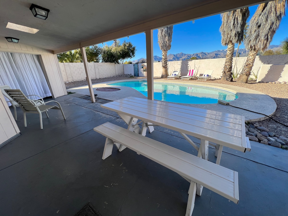 Get ready to be hugged by the mountains, kissed by the sun, and enveloped by Southwest culture. Our spot is not only perfect for families staying and hosting holidays but superb for exclusive adult retreats and fun as well. The perfect mix of privacy, beautiful scenic views, and modern comfort. We want to make our home YOUR home! This property is located on the East side of Tucson. You’ll have a wonderful view of the Catalina mountains and your own private pool!