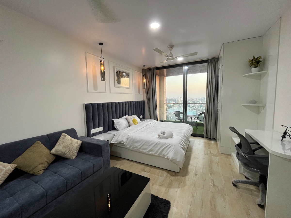 Cəmi 3-4 dəqiqəlik məsafədə dəmir yolu stansiyası olan mərkəzdə yerləşən mənzil? - əldə edirsiniz Əyləncə üçün 42inch TV və OTT ilə birlikdə sürətli Wi-Fi? -yaxşı başa düşürsünüz Mikrodalğalı soba, Soyuducu, RO, Qida ehtiyacları üçün induksiya? - əldə edirsiniz İdman zalı və sonsuzluq hovuzuna giriş? - əldə edirsiniz Şəhər mənzərəli böyük çarpayı ölçüsündə çarpayı? - əldə edirsiniz! Şəhər səması mənzərəli balkon? -yeni də qəbul edin! Bu 1BR penthaus studiyası əla komfort və imkanlar təklif edir. Cütlüklər və soloslar üçün mükəmməldir, daha çox deməliyik?