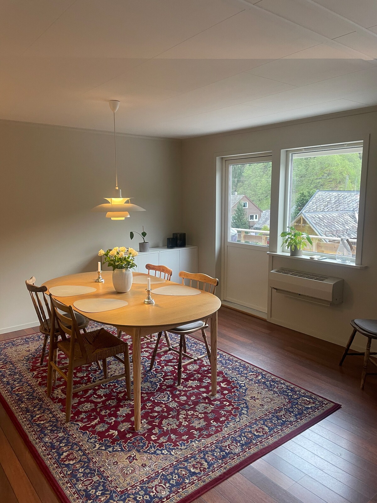 The apartment is located in Ytre Arna with a nice view over the fjord. It is located 20mins by car from the center of Bergen. The busstop is 3 minutes away and you can get to the City in 30 to 40min by bus. We can help you plan your transport from the airport. There is a big garden and a park close to the appartment. We also have a private parking place for you. There are nice hiking possibilities here and on the way to the fjords/Hardanger.