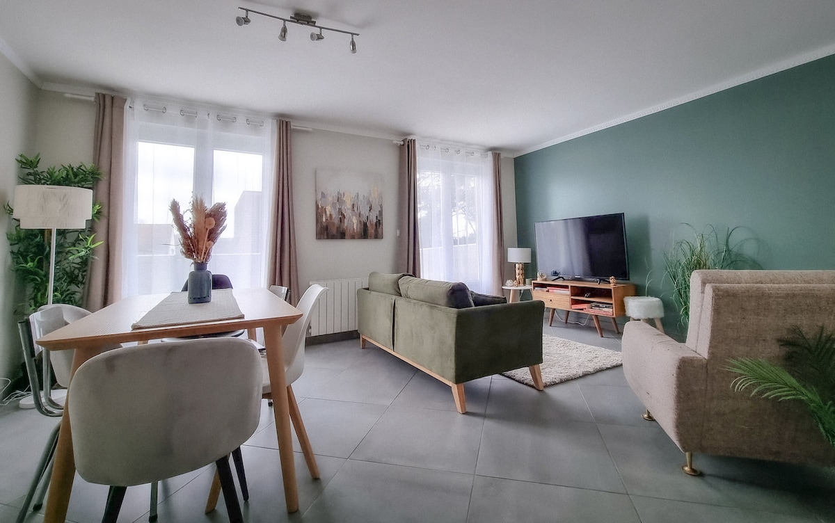 Dostlarınızla həftəsonu, işgüzar 🚀 səfər 👨🏫 və ya ailə ilə birlikdə sizə ev sahibliyi etməkdən məmnunam🏠 Bina Fransada Tremblay şəhərində xoş sakit yaşayış yerində və mağazalara yaxın ərazidə yerləşir 🍕💊🍔🍟 Roissy CDG və Le Bourget hava limanına yaxın 🛫 (10-20mn) Təhlükəsiz qapalı parkinq Maksimum 4 nəfər yatır: 1 çarpayı + 1 divan çarpayı. - Roissy CDG ✈️ - Parc Astérix 20mn 🚘 - Disneyland Paris 30 dəq 🚗 - Paris Eyfel Qülləsi 🗼 - CC Aéroville
