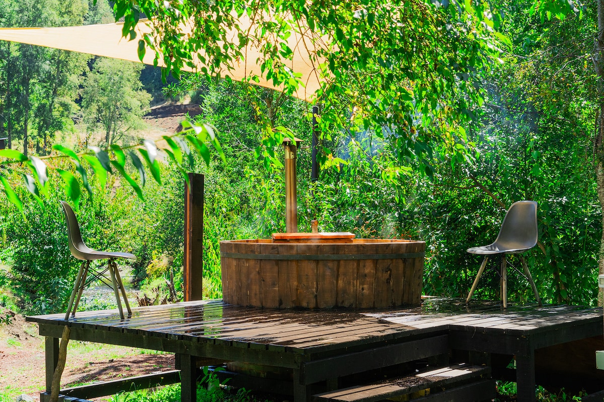 Ayrıca tinaja və çay mənzərəli romantik kabinə