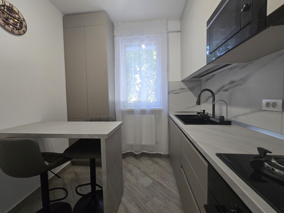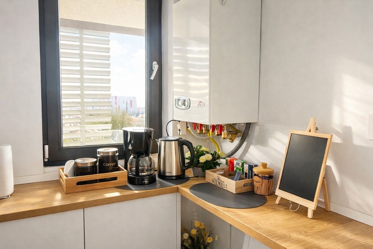 ✨ 2 geniş otaqlı, 2-4 nəfər üçün mükəmməl olan müasir mənzil. Tam təchiz olunmuş mətbəx və 🛋 divan-çarpayısı olan açıq məkanlı qonaq otağı, üstəlik rahat ayrıca yataq otağı. 🚋 Şəhər mərkəzinə sürətli giriş üçün binanın arxasında tramvay stansiyası. ✈️ Yassi Hava Limanına yaxın və 🛍 Yulius Mall və 🏛 Palas Mall-ın yaxınlığında yerləşir. 📺 Smart TV, 📶 Sürətli Wi-Fi və istirahət və ya iş üçün səmimi atmosfer. Uyğunlaşma üçün 🔑 öz-özünə giriş