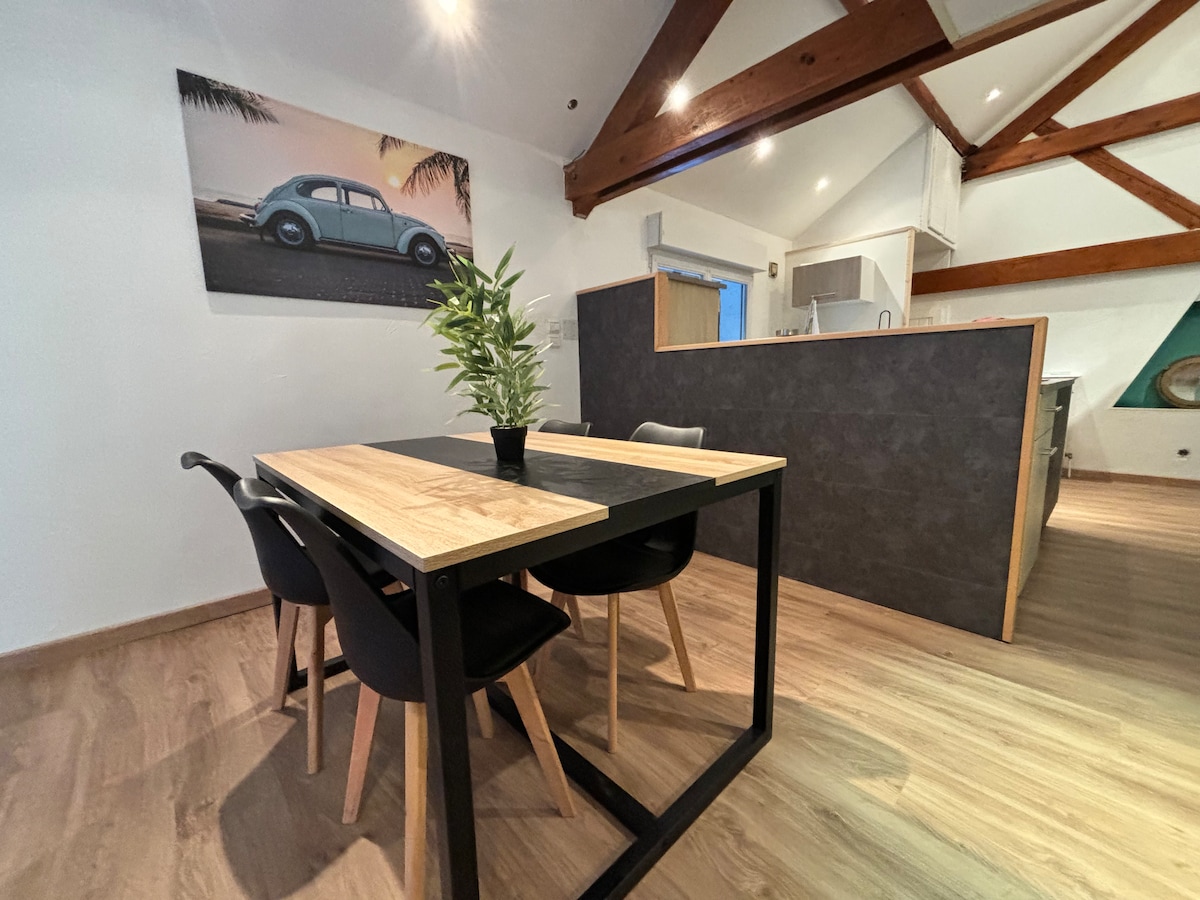 ✨ Hypercenter-da Château de Montbéliardın ətəyində isti və cocooning studiyasını kəşf edin 🏰 Təklif edirik: Vosges bərk palıdda 🌳 gözəl manger-debout 2023-cü ildə keyfiyyətli materiallarla 🛠️ təmir edilib - Wi-Fi, TV, Netflix - Hamam otaqları, hamam dəsmalları - Yataq dəsti - təchiz olunmuş balaca mətbəx Bu əmlak ideal şəkildə yerləşir: - qatar stansiyasından 200 m məsafədə - Piyada küçəsindən 200 m məsafədə (Xmas bazarı), - əsas avtobus dayanacağından 100 m məsafədə akropol - Stellantisə 5 dəq