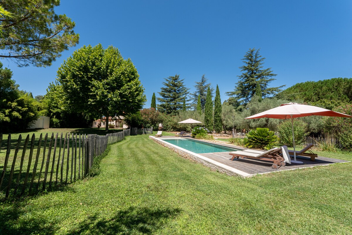 Détendez-vous dans ce logement calme et élégant. Situé à Sussargues dans l'Hérault, au coeur des vignes et de la Garrigues, à 25 min de Montpellier et de la plage, dans un petit village avec toutes commodités, ce studio saura vous faire voyager grâce à sa décoration. Le studio est attenant à notre maison où nous habitons avec nos 2 enfants. Piscine agréable, traitée au sel, à l'abri des regards. Jardin et grande terrasse.