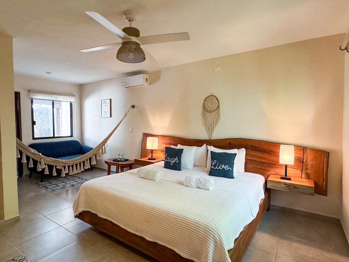 "KIIN WAYEB" təcrübəsini yaşamaq üçün geniş və rahat Ən eksklüziv otaqlarımız sizə rahatlıq və dəbdəbənin Yucatecan mədəniyyətinin cazibəsi ilə birləşdiyi unudulmaz təcrübə təklif etmək üçün hazırlanıb. Bu otaqlar iki rahat ikinəfərlik çarpayı ilə təchiz olunub. Burada istirahət edə və təmir edilmiş yuxudan oyana bilərsiniz, masa, Smart TV, kondisioner, isti su və günortalar klassik Yucatec üslubunda dincəlmək üçün qamak.