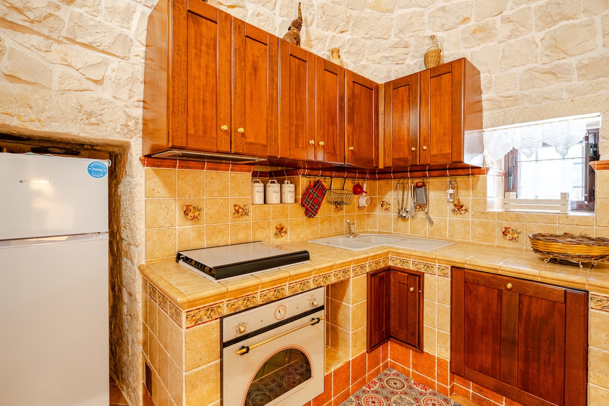 Kənddə orijinal üslubu olan rahat bir yerdə təmir edilmiş trullo, interyerlərin əksəriyyəti təkrar emal edilir və ya köhnə mebellər müasir-funksional şəkildə yenidən kəşf edilir. Qonaq otağında 1 ikinəfərlik yataq otağı və 1sofabed var. Duş,tam təchiz olunmuş mətbəx,paltaryuyan maşın və açıq havada çoxlu sahəsi olan yeni təmir edilmiş hamam otağı (bir terras yataq otağından, biri isə digər tərəfdən bbq ilə əlçatandır Üzgüçülük hovuzuna giriş digər 2 əmlakın qonaqları ilə paylaşılır (xarici görünüş yoxdur)