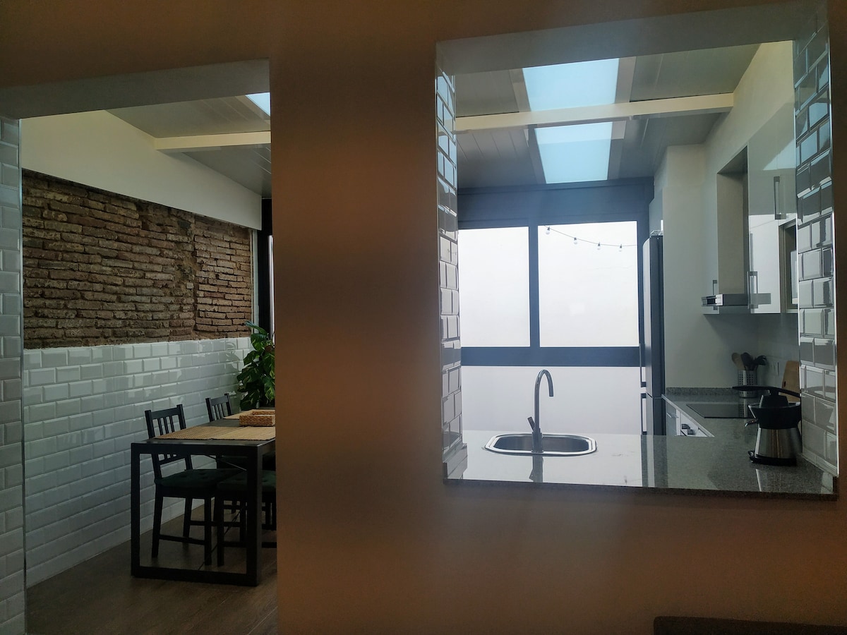 Medblau : Atico Duplex en antigua nave restaurada, totalmente nuevo. Acabados de calidad para garantizar una experiencia única. En la terraza encontrareis un spa-jacuzzi con agua caliente.En el garage podréis dejar bicis, patinetes u otros con total seguridad ya que gestionamos todo el bloque. Dispone de todos los servicios : climatización, domótica, estufa nórdica, lavadora-secadora, etc ... Estación de cercanías a 50 metros (1€, 18 min a centro de Barcelona!)