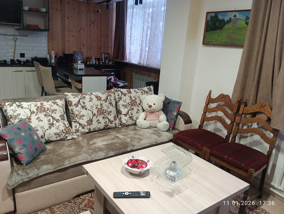 The apartment is in the heart of Vanadzor only 2 min away from the central square. Excellent access to a variety of grocery shops and vegetable stands. Several minutes' walk to cafes and restaurants. The home maintains all of the decoration, content and living arrangements of the owners and can give a complete immersion into the inner dynamics of Vanadzor's everyday life.
