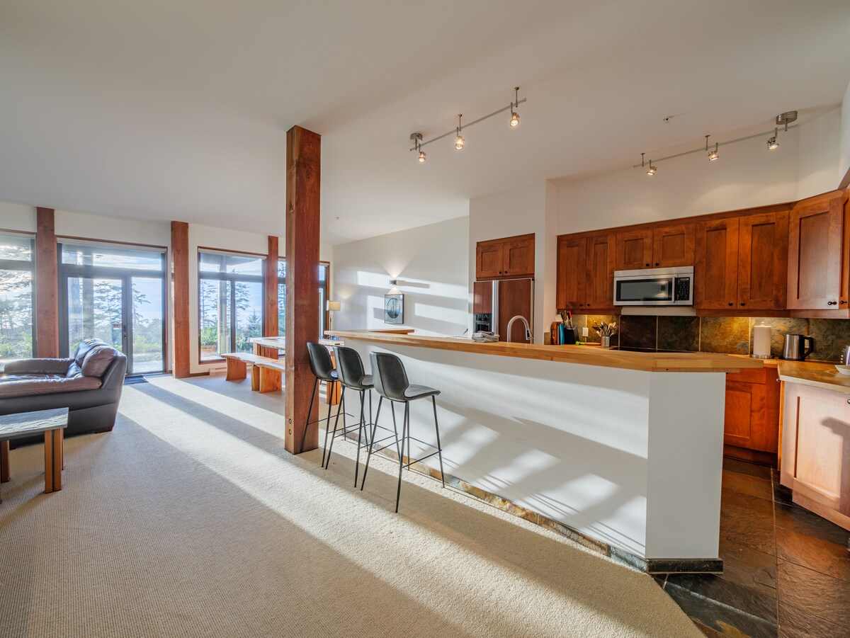 Süitamız 9’ tavanı və səxavətli 810 SF sahəsi olan heyrətamiz, yeni tikilmiş bir yataq otaqlı istirahət yeridir. Burada səyahətləriniz zamanı yüksək keyfiyyətli həyat tərzini təmin edən 58" ağıllı televizor və tam təchiz olunmuş mətbəx var. Ayrıca balkonunuzdan nəfəskəsici günəşin doğmasını və qürubunu kəşf edin. Corciya Boğazında okean və dağlara möhtəşəm mənzərə açılır. Rahat yerləşmiş süitamız Vankuver adasının bütün xüsusiyyətlərini kəşf etmək üçün ideal bazadır.