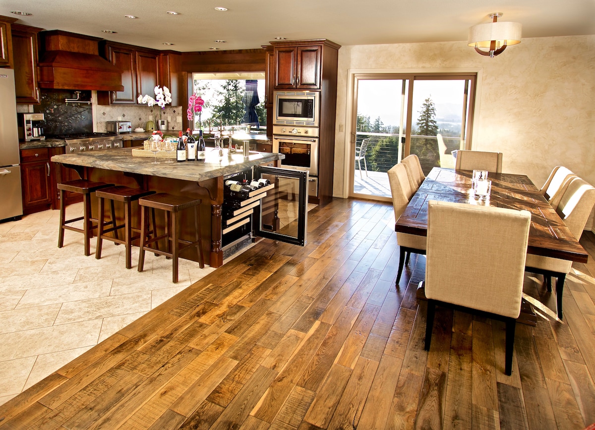 8 private acres atop Parrett Mountain — sweeping Pinot Noir vineyard & valley views, Tempur-Pedic suites & heated stone floors. The only estate in Willamette Valley with an Oregon Red Cedar sauna, cold plunge, starlit hot tub & Universal EV Charging. Two full chef's kitchens, Egyptian cotton linens, Dyson air purifiers & hair tools, 4 bedrooms, sleeps 12. Optional add-ons available: private chef, Sommelier wine tasting & concierge services. 5 min to Newberg · 30 min to Portland · 40 min to PDX.