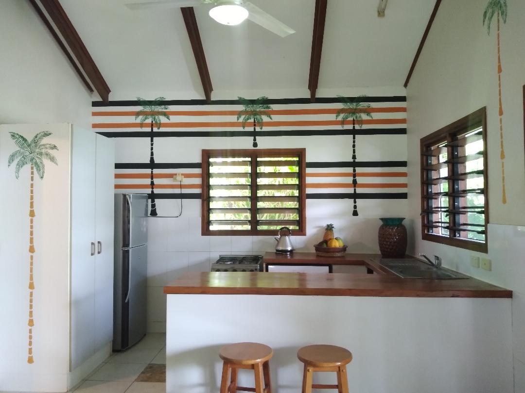 The unit features a large verandah with spectacular sea views, a large sliding door provides good indoor outdoor flow, a fully equipped kitchen and sitting room with a convertible sofa bed, and double bedroom with en-suite shower. Your private white sandy beach is just a few meters away, with plenty of shades under the pandanus trees to swing in your hammock.
