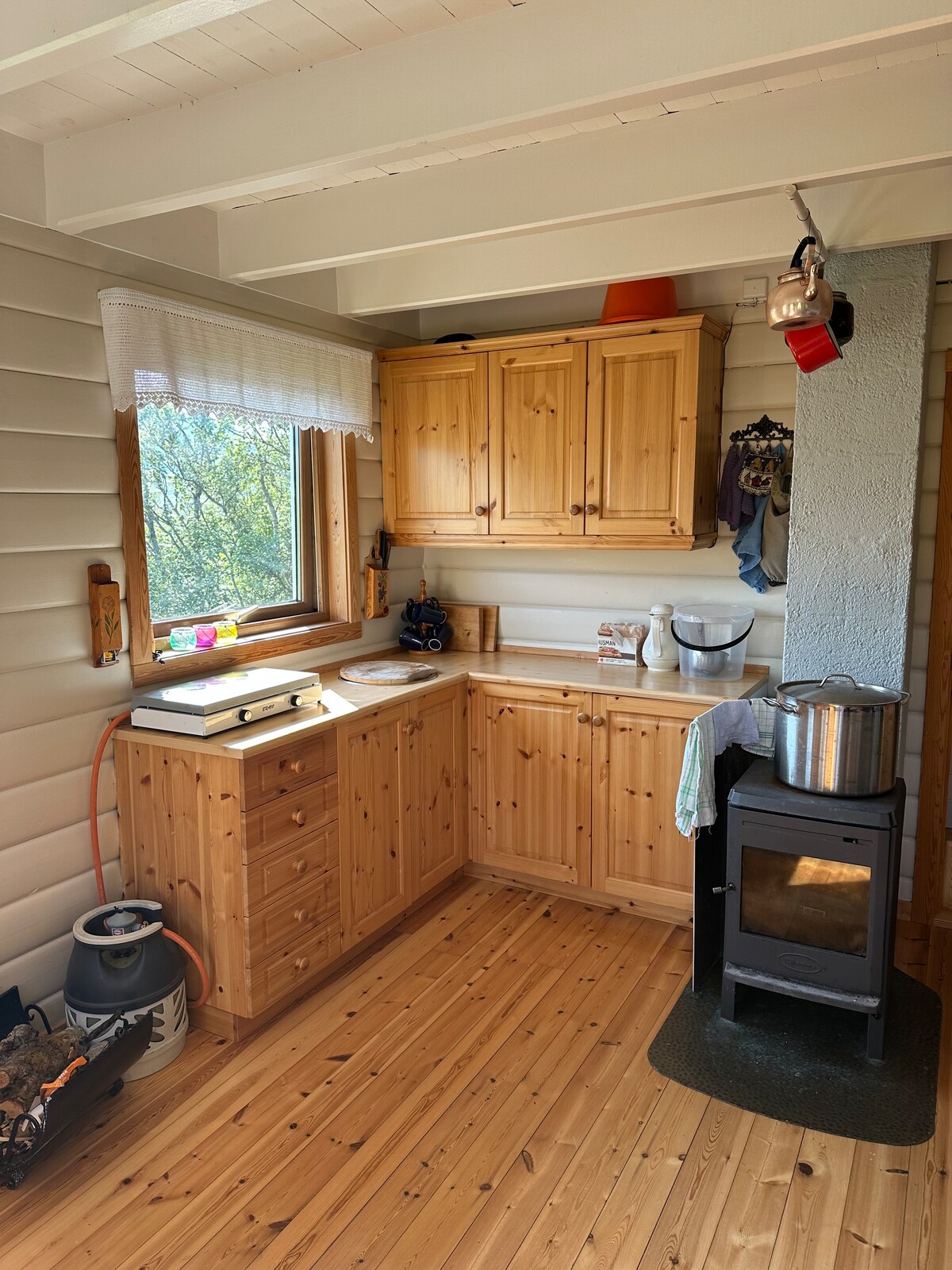 Bu sevimli məkan adi bir şeydir. Burada qızılda yaşamaq hissi və 20 kvadratmetr + loftdan ibarət lüks bir yer var. Böyük pəncərələrdən gözəl fyord mənzərəsi görürsünüz. Nərdivanla yuxarı qalxmağı bacarırsınızsa, qızıl evdə yatmaq mümkündür. Evcik əsas yoldan 200 metr məsafədə yerləşir. Pulsuz parkinq. Evcik ev sahibinin bağında yerləşir. Möhtəşəm mənzərələri olan qısa və ya daha uzun dağ gəzintilərinə yaxınlıq, dəniz kayakını götürün və ya sadəcə terrasdan zövq alın. Kəndin idman zalında asan fitnes dərsləri almaq imkanı.