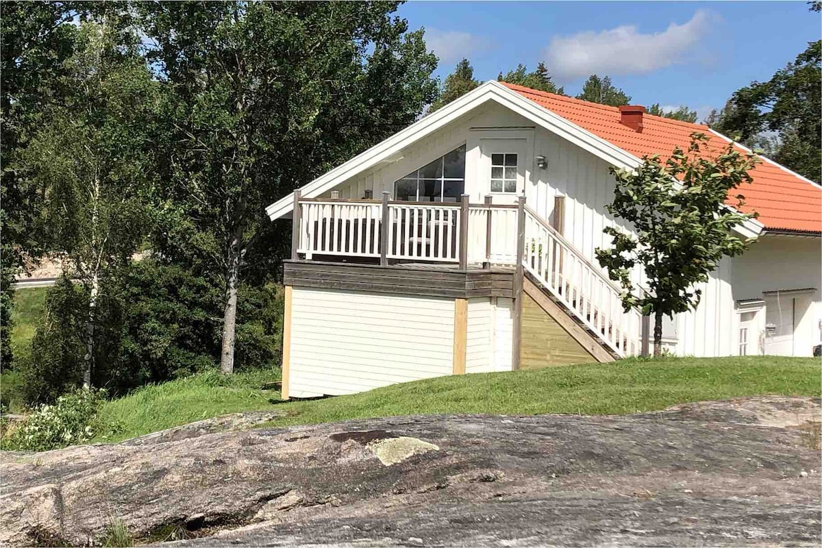 Historic guest house (built 1836) on a small peninsula by Lake Anten. Private entrance, parking and clearly defined outdoor areas. Peaceful countryside setting, 20 minutes from Alingsås. Public beach with sandy shore 150 m away. Our family lives in the main house on the estate, located separately. Limited traffic on nearby country road. Ideal for those seeking privacy, nature and space.